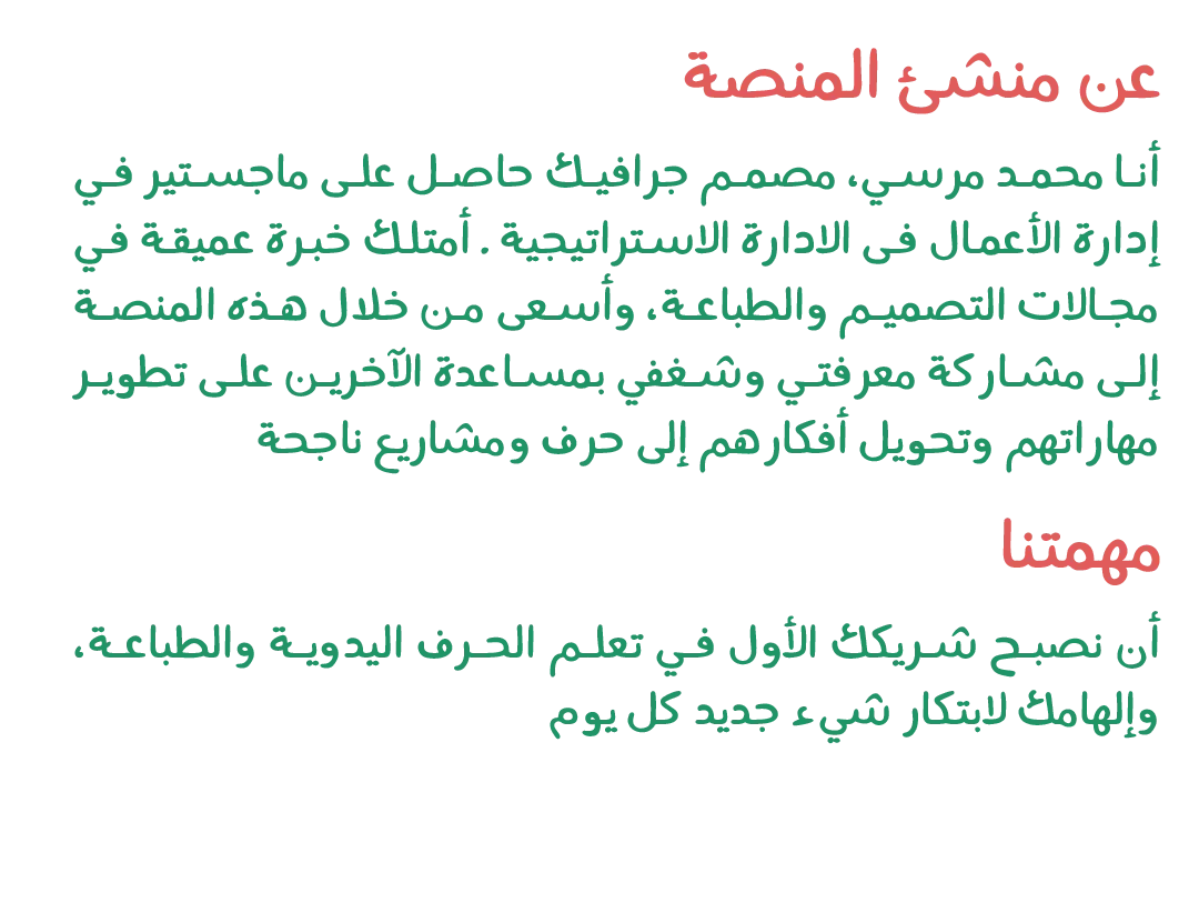 "ملخصات الكتب تقدم لك الأفكار الرئيسية لأهم كتب التنمية البشرية والتحفيز بشكل مبسط وسريع. أما المقالات فهي مصدر غني بالمعلومات والنصائح في مجالات الحرف اليدوية والطباعة."
